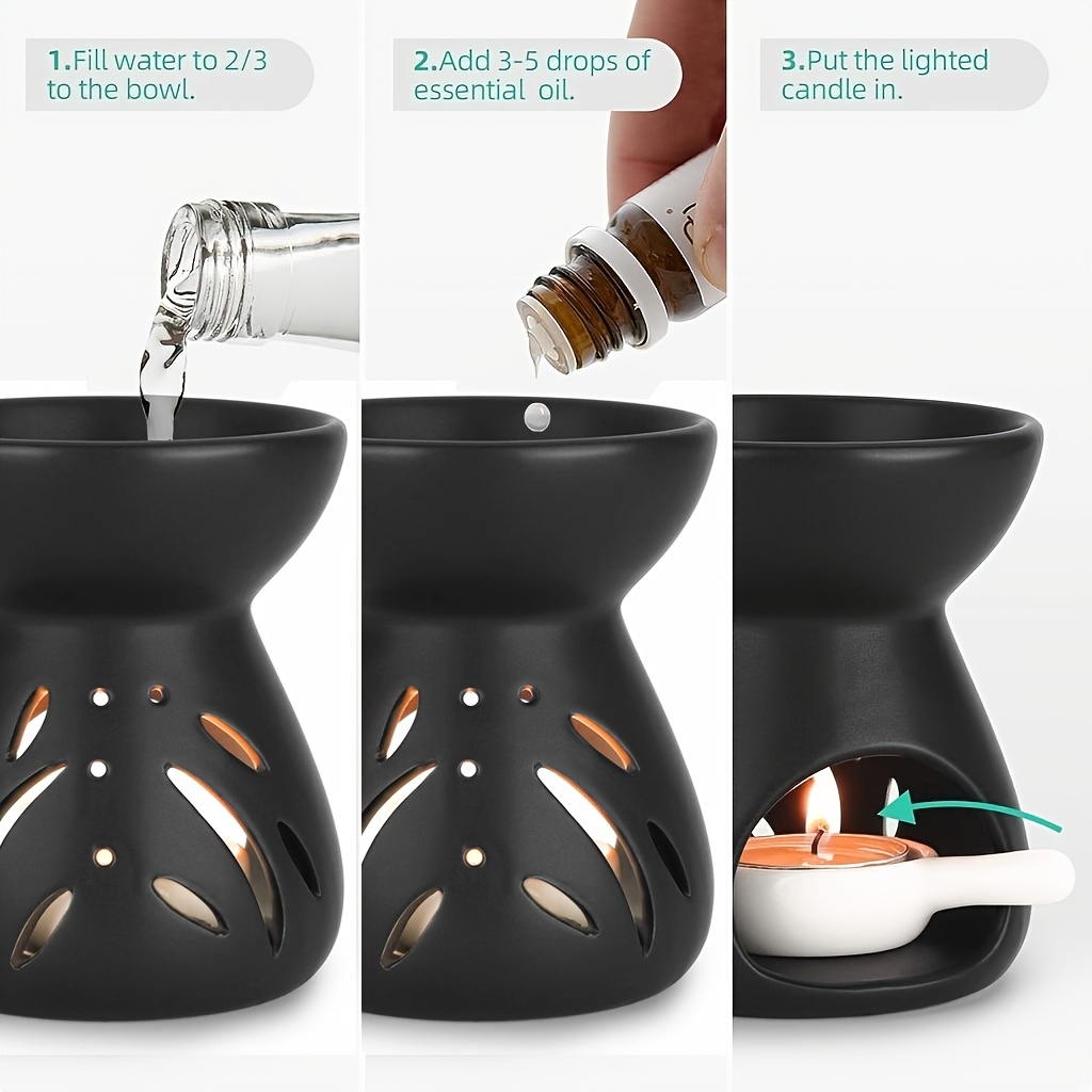 3. Every aromaRelax burner comes with a practical candle spoon with handle which makes it easy to pla in and pull out.4. The ential oil burner has beautiful cut-out patterns.The hollowed-out design allows tealight to go through out, giving an artful appeal to your indoor spa.